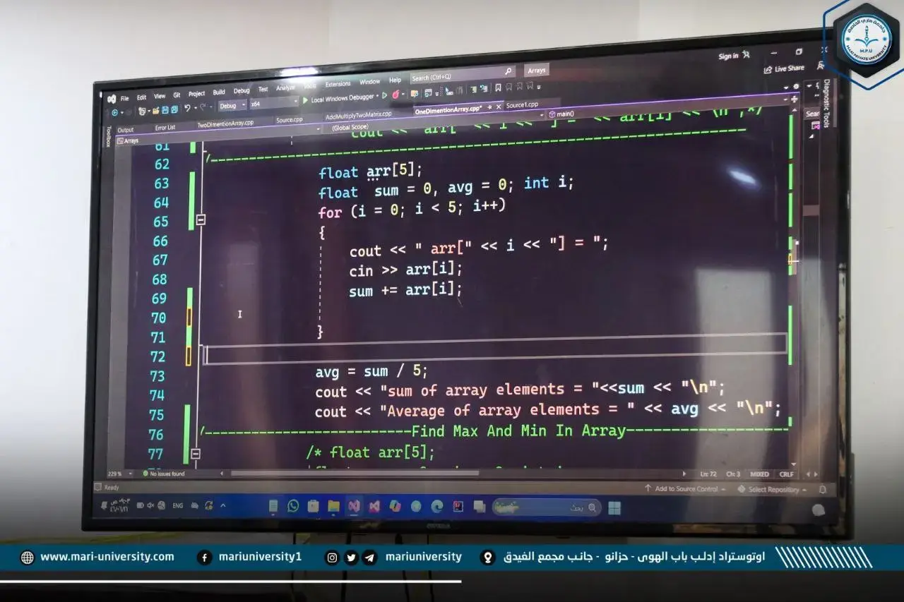“بين أروقة جامعة ماري، تُشَيّدُ عوالمُ الابتكار الرقمي.. كلية الهندسة المعلوماتية نموذجٌ للريادة التكنولوجية، تدمج بين المعايير العالمية في علوم الحاسوب والاحتياجات المحلية، لتقديم تعليمٍ متطور يُواكب متطلبات الثورة الصناعية الرابعة، ويُسهم في بناء مجتمعات ذكية قائمة على التحوُّل الرقمي.